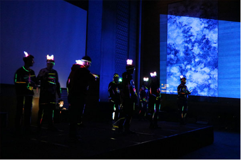 讓我們舒緩一下緊張的情緒,讓我們一起欣賞接下來(lái)的精彩表演——熒光舞